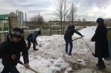 Сегодня обучающиеся 6-8 классов раскидали снег на территории школы.