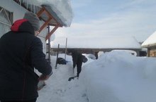 Учащиеся 9 класса очистили двор и крышу дома от снега ветерану труда и ветерану-учителю Файзуллиной Насиме.