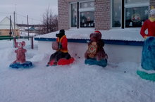 Вся школа приняла активное участие в строительстве снежного городка. Младшие школьники слепили красочную елку, чебурашку, учащиеся 5 класса слепили символа 2016 года – обезьяну, 6 класс – крокодила Гену, 7 класс - символ уходящего года - козу. Работы учащихся 8-9 классов ( Дед Мороз и Снегурочка) понравились каждому ребенку и взрослому.