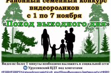 МБУ ДО "Центр детского творчества" проводит районный семейный конкурс видеороликов "Поход выходного дня". С 1 по 7 ноября необходимо выложить видео (не более 1 минуты) в социальной сети Вконтакте Уруссинский ЦДТ под хештегами #РДШ#РДШРТ#@utazaobrazovanie#cdt_utaz#ПоходВыходногоДня#школа#д/с#ФИО