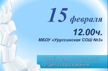Уважаемые родители! 15 февраля в 12.00 ч. приглашаем Вас на встречу с начальником Отдела образования Г.М.Гилязевой. Каждый желающий может задать свой вопрос.