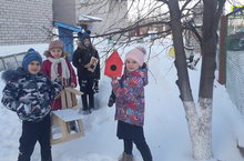 Учащиеся1 класса с родителями сделали кормушки для птиц.
