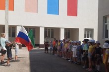 Торжественная линейка. Поднятие государственных флагов в лагерной смене.