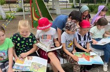 Работники библиотеки интересно провели мероприятие " Жили- были рыбы, птицы, звери". Надо отдать должное знаниям наших детей, на все вопросы они отвечали быстро и правильно. Как всегда в тёплые объятия принял нас "Семейный" парк, где мы провели весёлые подвижные игры. После обеда каждый нашёл занятия по интересам. Завершился наш день посещением стадиона! -