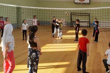 Обучающиеся спортивного клуба "Здоровейка" игратют в пионербол. Самая младшая группа.