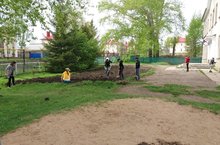 Проведен очередной субботник. Ребята подметали школьный двор, готовили цветники под посадку цветов и грядки под посев овощных культур.