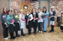 Каждый участник встречи получил от Профсоюзной организации работников образования сертификаты на покупки в магазине "Магнит-Косметик" и букет цветов.