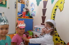 Дети, вместе со своими воспитателя инсценировали сказуку "Доктор Айболит".
