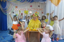 Сегодня детьми старшей группы была инсценирована русская народная сказка "Репка", а в качестве рассказчика был Петрушка - кукольная игрушка. Дети младшей группы были зрителями. Так же выступали дети, которые исполняли музыкальные номера к этой сказке.