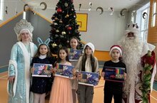 Особенным моментом стало появление Деда Мороза! Он не только поздравил победителей и призёров школьных олимпиад, но и устроил зажигательный танцевальный конкурс «девочки против мальчиков». К поздравлениям с радостью присоединился и наш учитель географии и ОБЗР — И.Н. Хабиров!