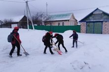 В рамках месячника гражданско-патриотического воспитания учащиеся школы члены отряда Юнармия провели ряд мероприятий. Одним из таких дел является оказание посильной помощи ветеранам войны и труда, труженикам тыла. Юнармейцы очищают дорожки после снегопада.