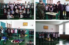В рамках гражданско - патриотического месячника 22 февраля учащиеся 7,8 классов поздравили юношей школы и учителей – мужчин с Днем Защитника Отечества. Затем с юношами 5-11 классов был организован конкурс «А ну-ка, парни!». Юноши состязались по спорту, сбору и разбору автомата, а также хозяйственным навыкам.