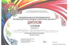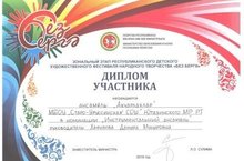 26 марта прошел муниципальный этап Республиканского фестиваля детского народного творчества «Без бергэ». Ансамбль «Акчарлаклар» в номинации «Инструментальный ансамбль», руководитель Хафизова Дамира Мунировна, заняли 1 место. Поздравляем! Желаем удачного выступления на зональном этапе.