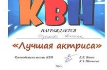 26 марта в РДК «Энергетик» прошли финальные игры фестиваля школьных команд КВН «Мы, выбираем будущее!» Садыкова Альбина, ученица 11 класса, награждена в номинации "Лучшая актриса"