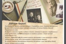 Приглашаем Вас принять участие в конкурсе «О проведении акции «Семейные фотохроники Великой Отечественной войны» в рамках подготовки к 75-летию Победы в Великой Отечественной войне. Вы можете сохранить память о родных и близких, воевавших на фронте и трудившихся в тылу, предоставив, свои фотоматериалы из семейных архивов, а также краткий комментарий к ним. Начиная с апреля 2017 года, Вы можете принести фотографии и иные материалы в любую удобную для Вас школу, где их отсканируют и сразу же вернут обратно. Вы можете передать фотоархивные документы для работы с ними через Ваших детей, внуков, которые учатся в школе.