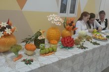 Ученица 10 класса Галиева Зифа, ученица 7 класса Марданшина Миляуша, учитель искусства Хафизова Дамира Мунировна провели мастер-класс по карвингу. Карвинг-художественное вырезание фруктов и овощей.