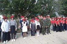 Торжественный прием состоялся на Монументе славы у Вечного огня с принятием клятвы и исполнением гимна Юнармии. -