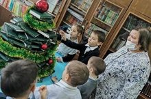 Учащиеся 1 класса с классным руководителем Зайдуллиной А.С., посетили школьную библиотеку, где установлена инсталляция из книг в форме новогодней елки. Библиотекарь Фаздуллина Г.М., задала загадки на новогоднюю тему.