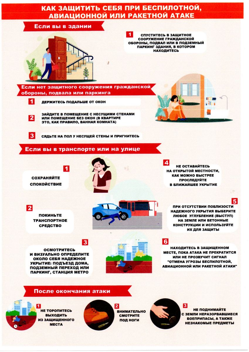С сотрудниками детского сада было организовано и проведено дополнительное занятие с доведением до персонала следующей информации:основные способы защиты от опасностей, возникающих при военных конфликтах или вследствии этих конфликтов, а также при ЧС природного и техногенного характера, беспилотной, авиационной или ракетной атаке; порядок укрытия в защитных сооружениях гражданской обороны и (или) заглубленных помещениях; порядок действий по сигналу оповещения "Внимание всем!"; правила поведения при эвакуации.
