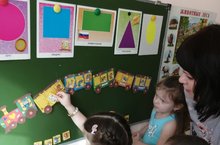 Максат. Зиһен сәләтен, саннар, төсләр, геометрик фигуралар белән таныштыруны дәвам итү.