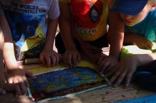 Здесь солнце, небо голубое,Здесь мы средь сказочных героев.Мы те, кто защитить должныИх мир от горя и войны.