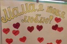 Сегодня утром, в рамках Дня матери, в детском саду была организована акция "Мама, я тебя люблю!". Детей и родителей встречали Скоморох и русская девица. Детки дарили своим мамам сердечки.