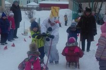 С целью развития интереса к зимним видам спорта посредством эстафет и конкурсов на участке детского сада для ребят старшего дошкольного возраста был организован спортивный досуг "Мы мороза не боимся"