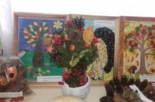 Предварительной работой к утреннику был конкурс поделок из природного материала. Все участники проявили интерес, фантазию и показали прекрасные работы, которые с интересом рассматривали все.