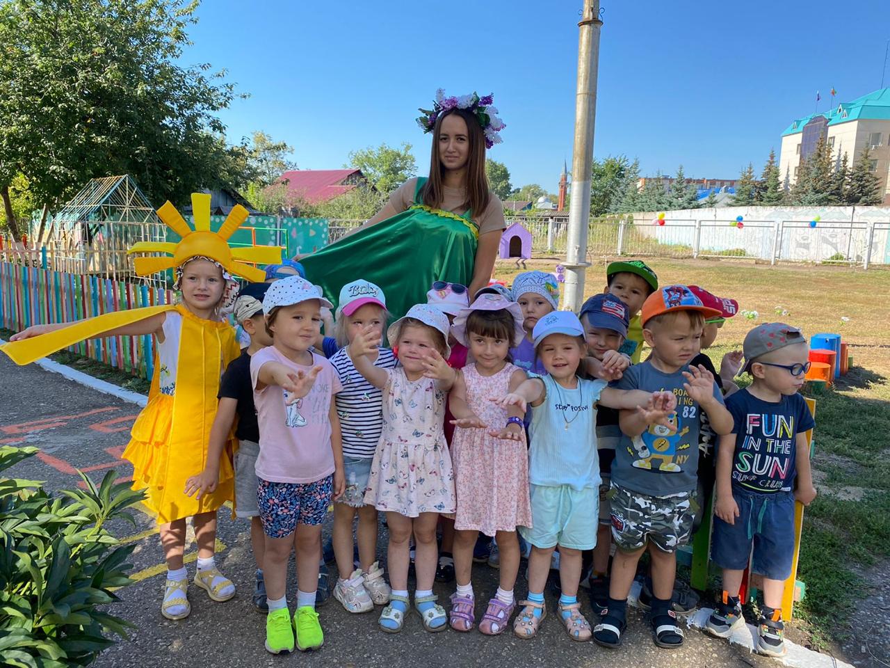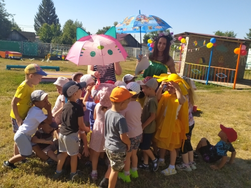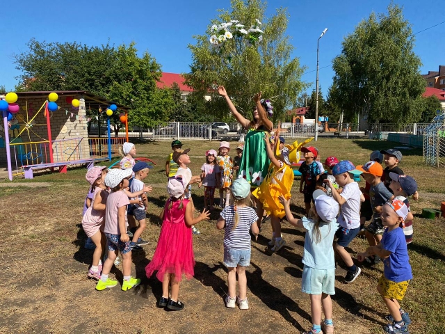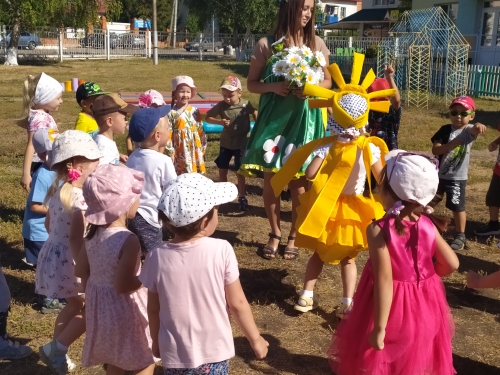 Воспитанникам нашего детского сада, нынешнее лето подарило немало ярких впечатлений, а значит хмурой осенью морозной зимой будет что вспомнить.Сегодня все ребята собрались, чтобы сказать любимому лету: «Прощай! Прощай до следующего года!». А лето красное не спешило прощаться с малышами, продолжало веселиться. Спели вместе песни, играли в веселые подвижные игры: «Солнышко и дождик», «Лавата». Игра «Кто скорее соберет цветы?» очень увлекла детей, где они проявили себя в роли цветоводов. А старшие дошкольники перенеслись в гости к Лету с помощью волшебных загадок, и оказались то на сказочной полянке, то на спортивной площадке, то на летней площадке. На сказочной поляне дети веселились с Дачной феей на спортивной площадке тренировались со Спортиком; а на летней площадке оказались в объятиях Лета. Все сказочные персонажи совместно с детьми танцевали «Зверобику», «Танец маленьких утят», пели песню «Вот оно какое наше лето!», выполняли композицию «Эй, лежебоки, ну-ка вставайте!», соревновались в играх-эстафетах. Славно все повеселились, очень крепко подружились, поплясали, поиграли, все вокруг друзьями стали. Что поделать? Но, однако, настала пора прощаться. «До свидания, лето!