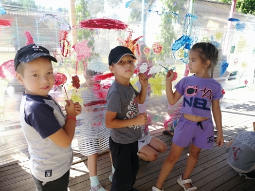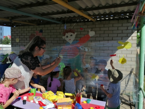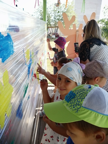 Сегодня воспитанники старших групп (педагоги Мухаметшина Л.И., Салимгараева К.Р.) участвовали в батле "Чьё солнце ярче светит" и создали небольшой анимационный сюжет "В гостях у Солнца". Задачей воспитанников было создание необычного образа, используя нетрадиционный элемент рисования. Мероприятие было незабываемым, а результат украсил прогулочную беседку и подарил незабываемые впечатления воспитанникам.