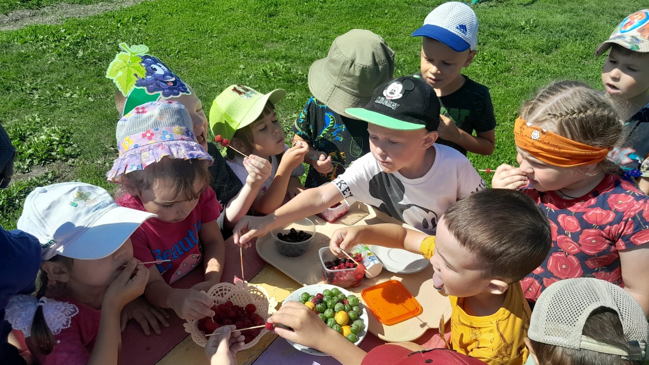 Сегодня в нашем детском саду тематический день - "День ягод". В процессе мероприятия, познавательных игр, дети вспомнили, что каждая ягода созревает в своё время. Закрепили о разнообразных ягодных вкусах. Задорно прошли подвижные игры: " У медеведя во бору", "Есть у нас огород". День ягод прошёл ярко, познавательно. В завершении мероприятия дети были приглашены на "ягодный пикник" -