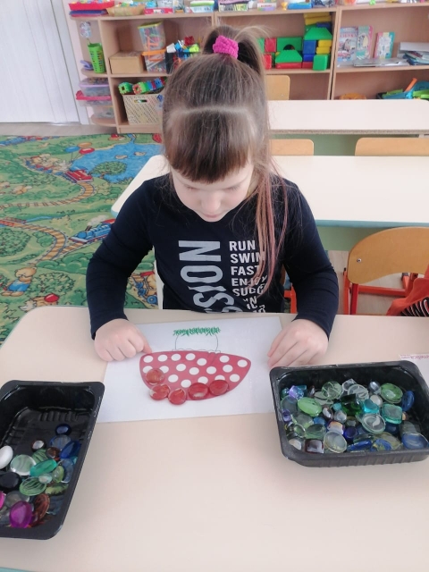 Цель: закрепить навыки рисования красками при помощи ватных палочек, формировать интерес и положительное отношению к рисованию, воспитывать усидчивость.