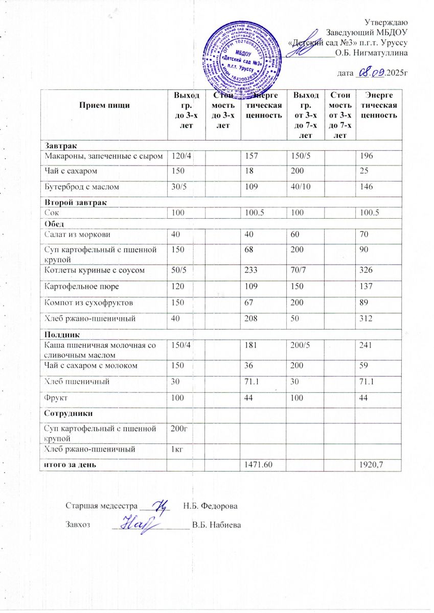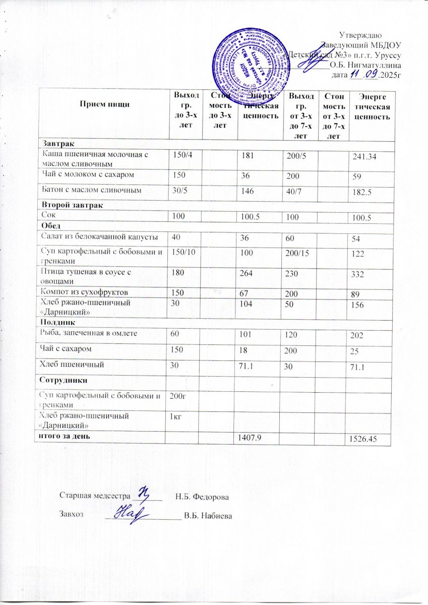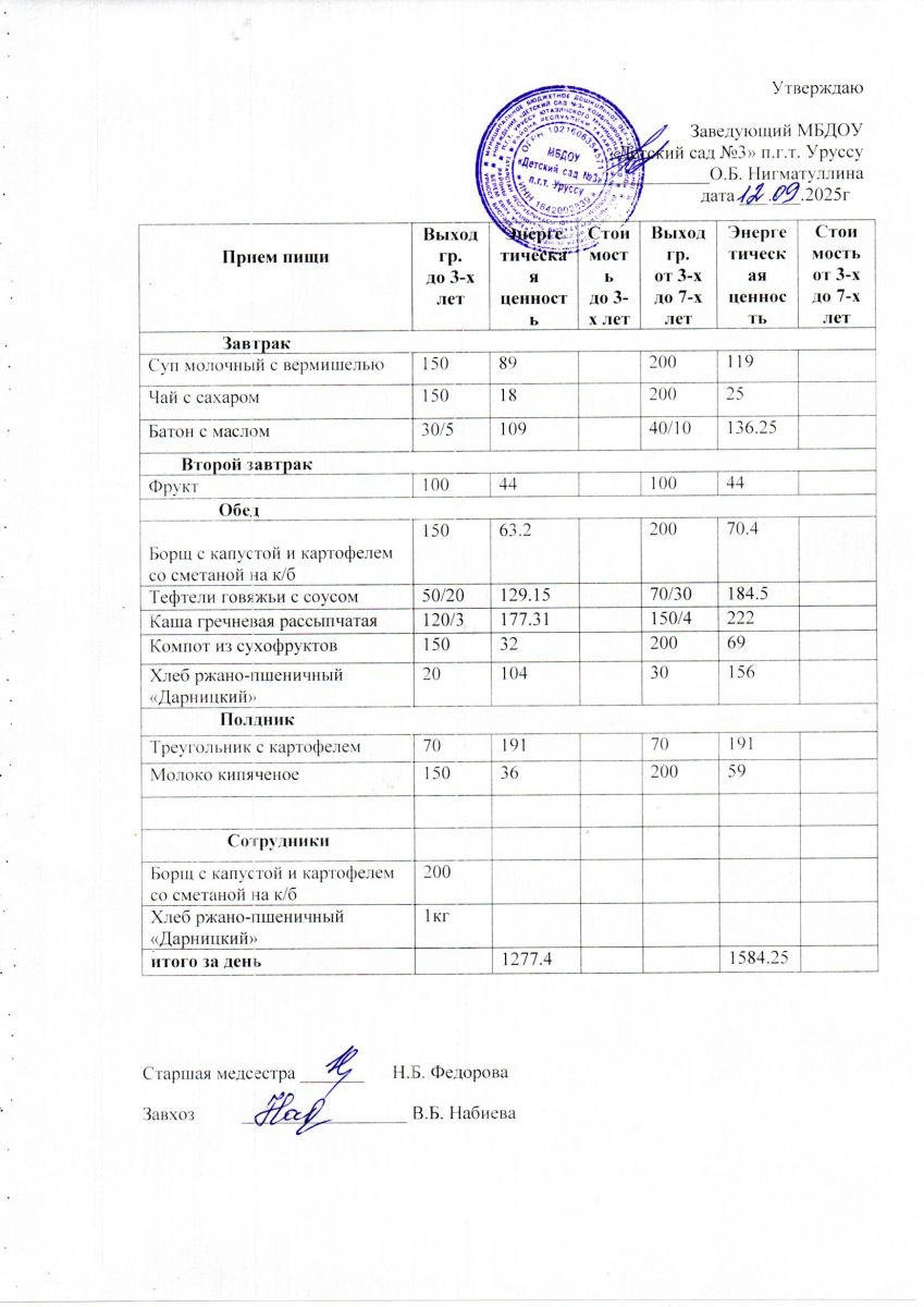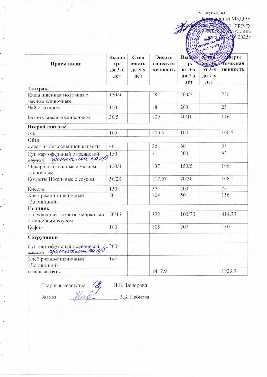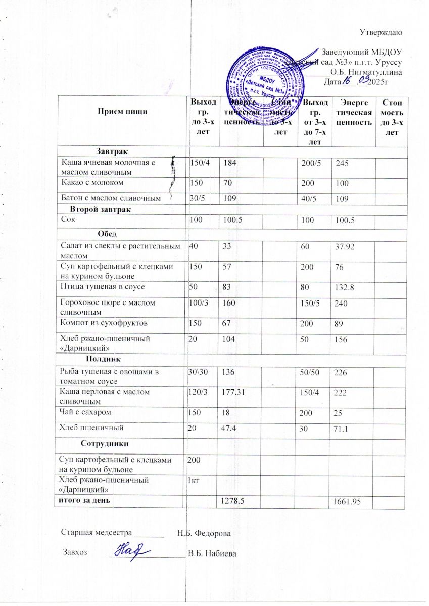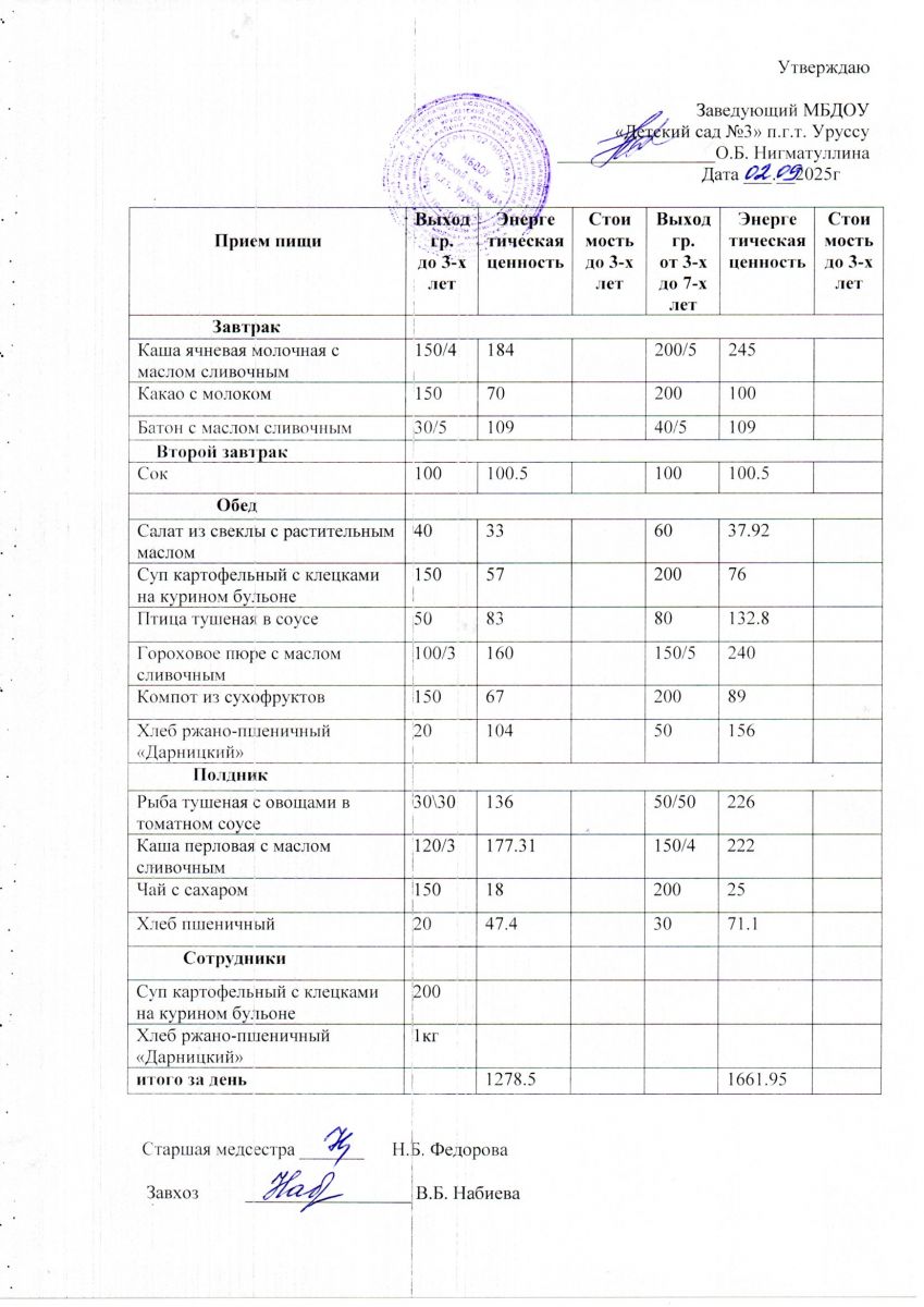 Меню ежедневного горячего питания