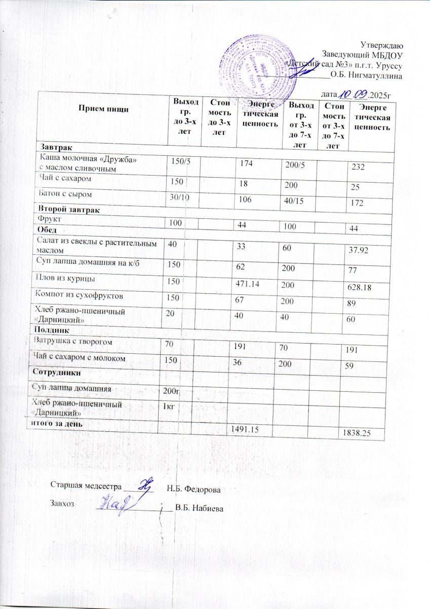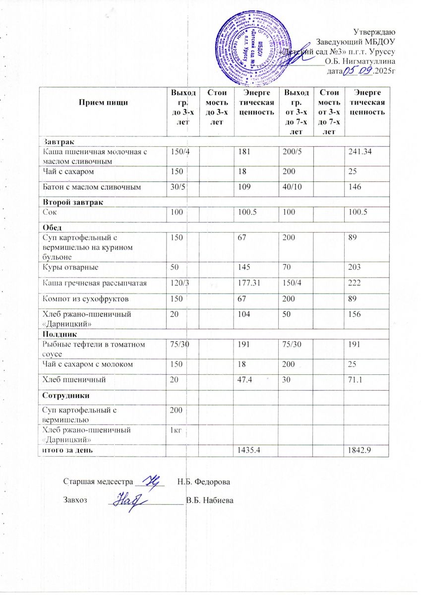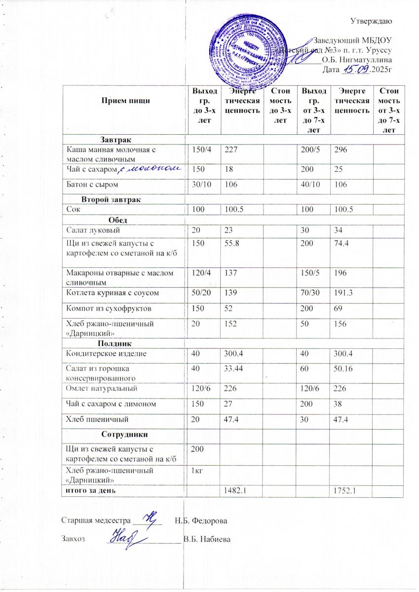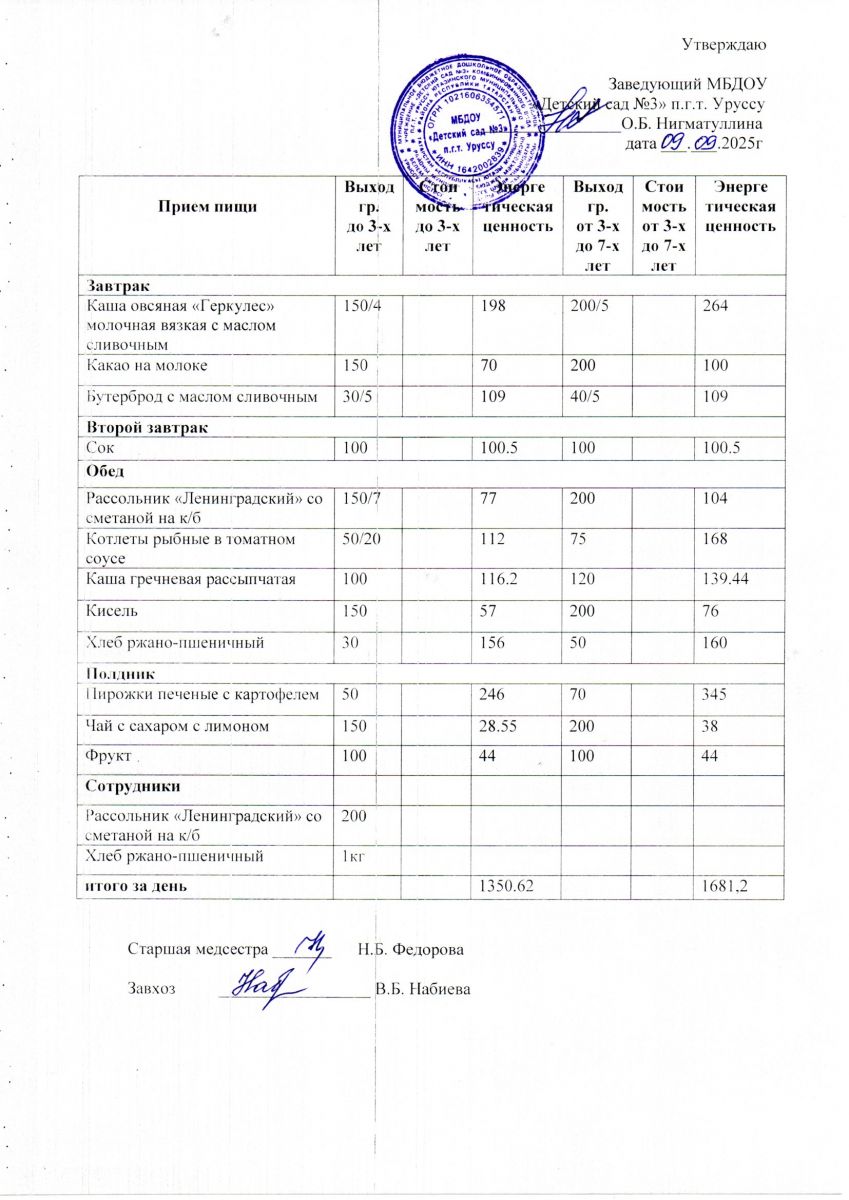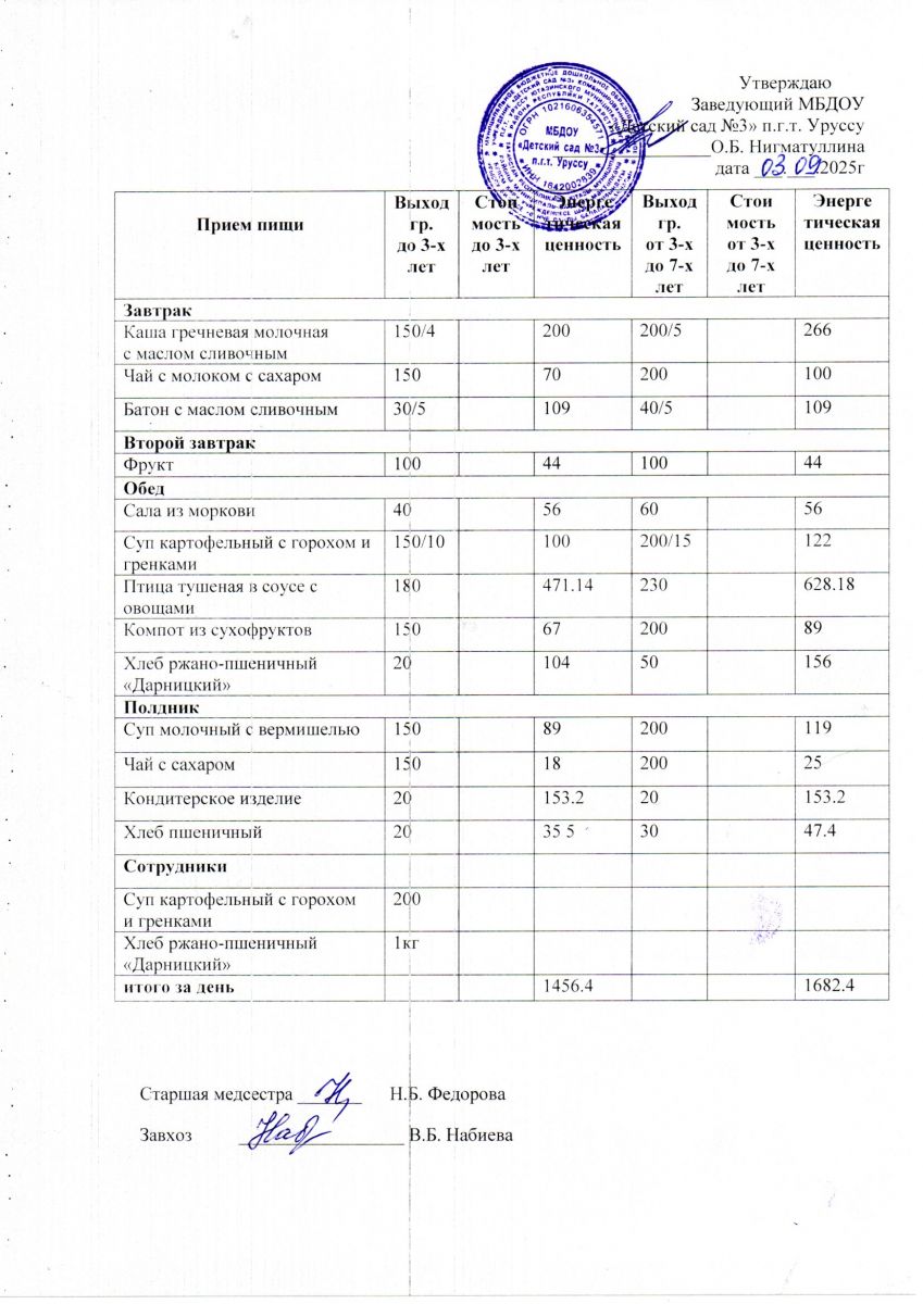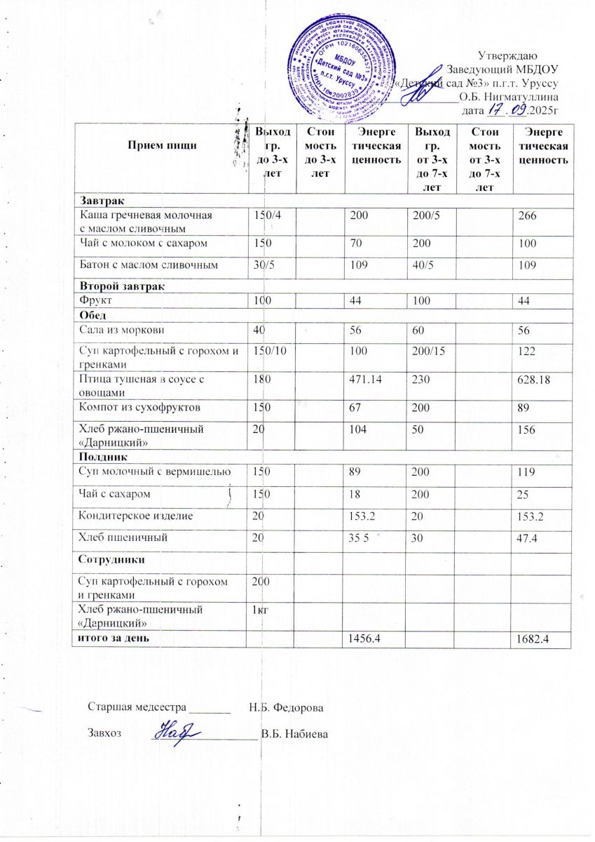 Меню ежедневного горячего питания