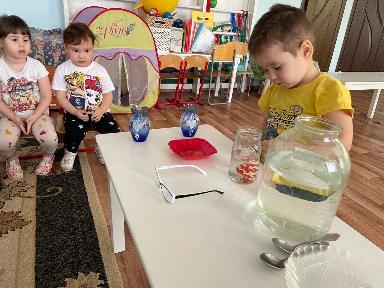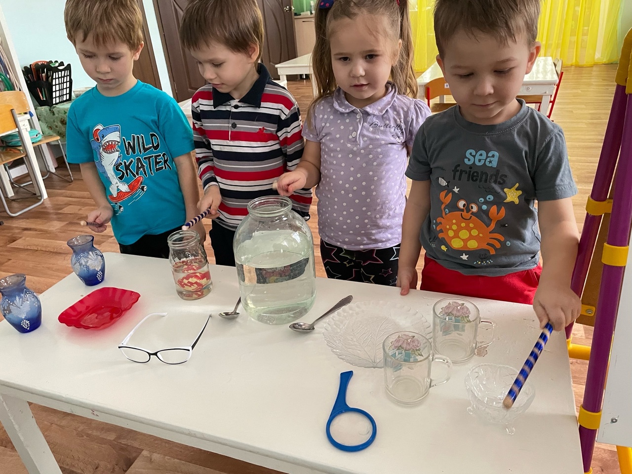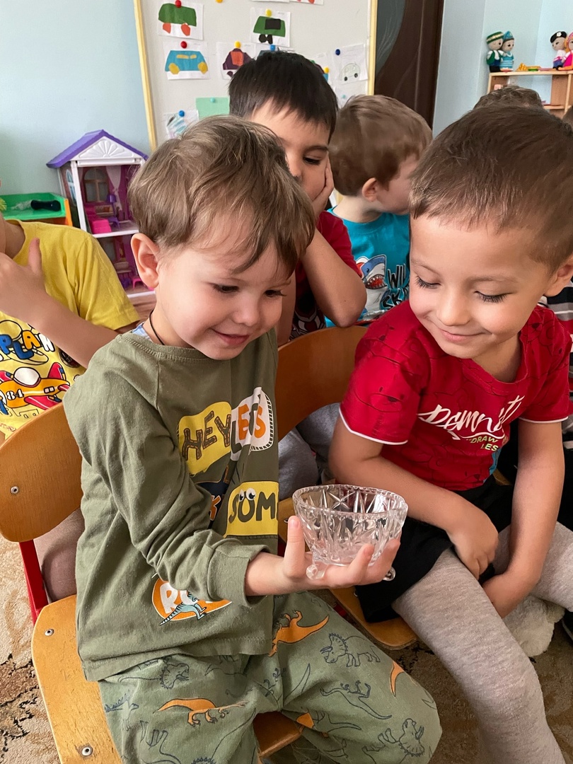 Проводилась исследовательская деятельность по знакомству со свойствами стекла, дети сравнивали и обобщали, находили сходные признаки приборов, выявили что стекло бывает (прозрачное, прочное, водонепроницаемое, гладкое, может быть бесцветным или цветным и т. д) Узнали какую пользу приносят человеку волшебные стекла, которые способны увеличивать и уменьшать предметы это (очки, лупа). Так же выяснили, что стекло при постукивании издает мелодичный звук.