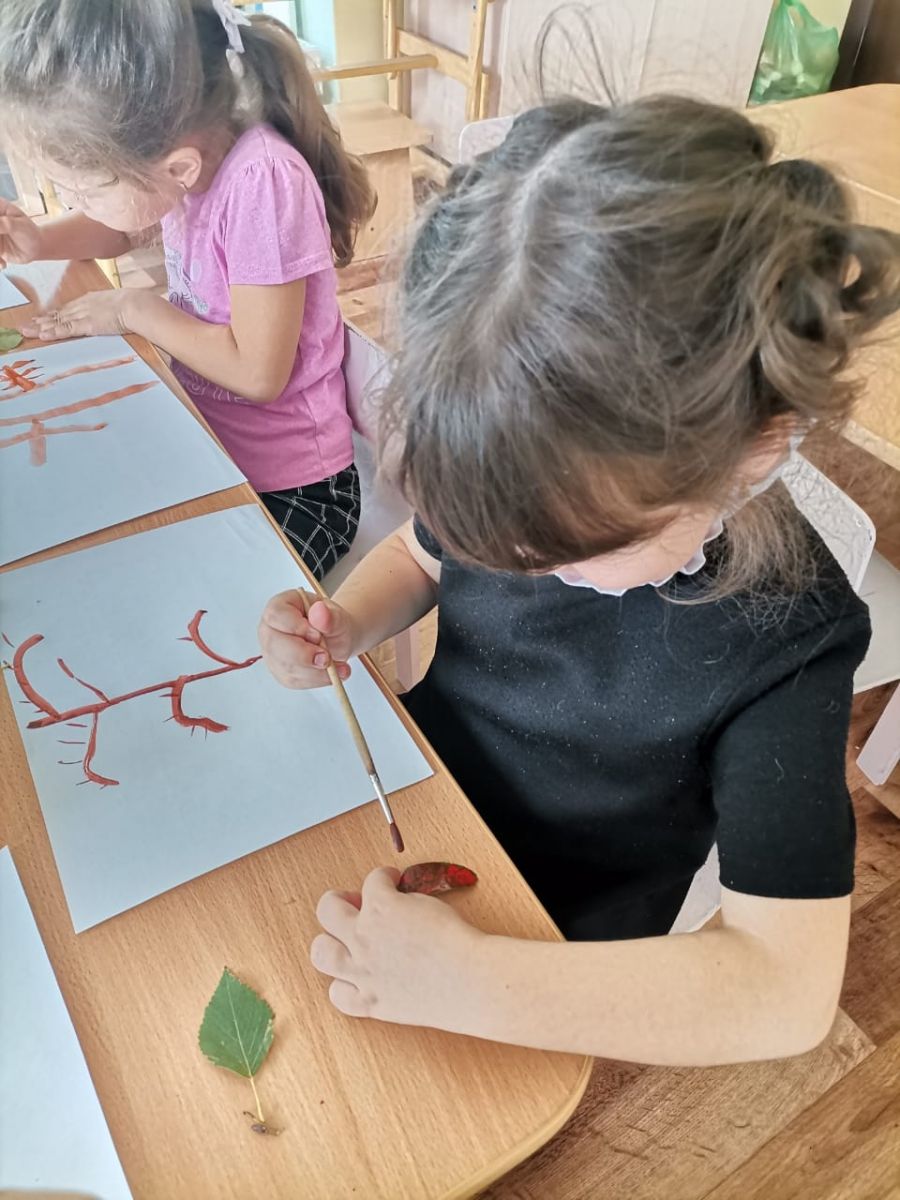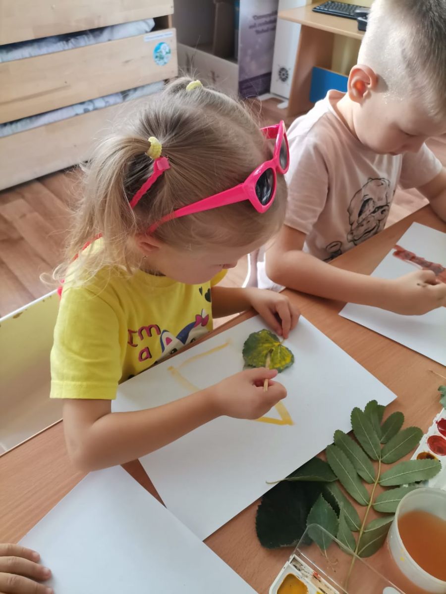 Нетрадиционные техники рисования в старшей группе "Осенний лес" (техника - печать листьями)
