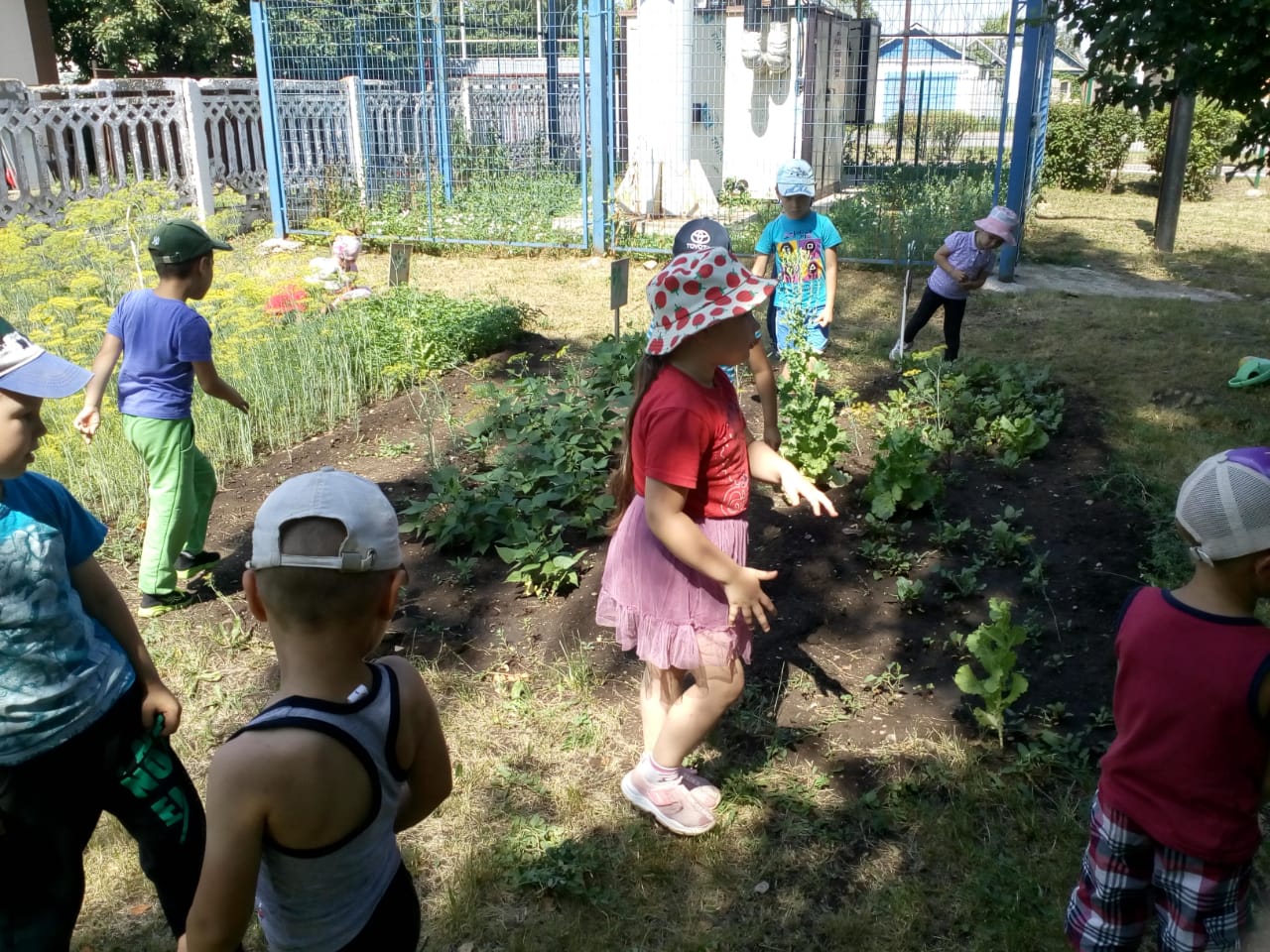 Традиционно на территории детского сада создаётся огород. Его наличие способствует осуществлению непосредственного контакта ребёнка с объектами природы, “живое” общение с природой, наблюдение и практическая деятельность по уходу за ними.