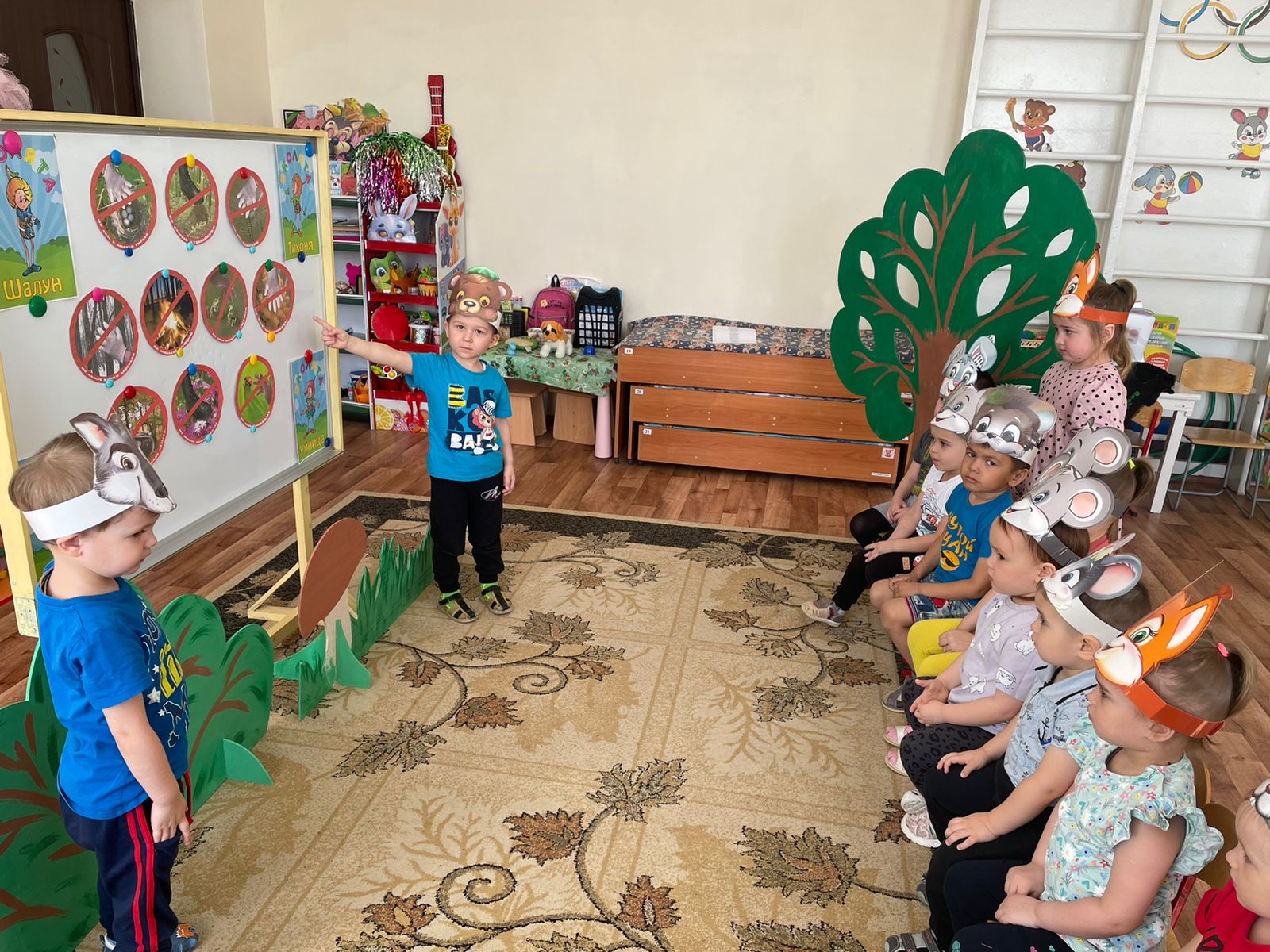 Где ребята знакомились с Эколятами. Кто они такие и для чего нужны, а также была организована работа: "Поиск решений по сохранению природы", где дети узнали: «Правила поведения на природе» Знакомство проходило в нетрадиционной форме, а в инсценировки Экологической сказки— «Лесное собрание»