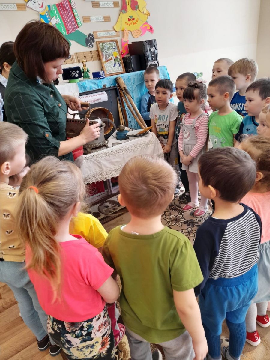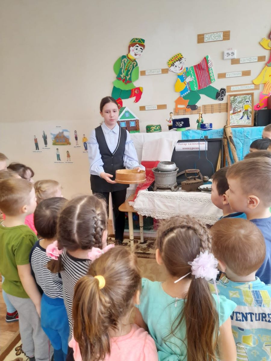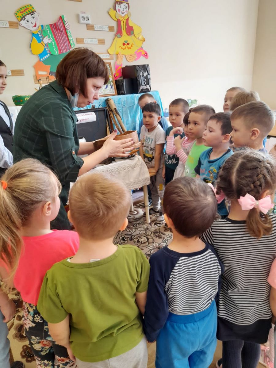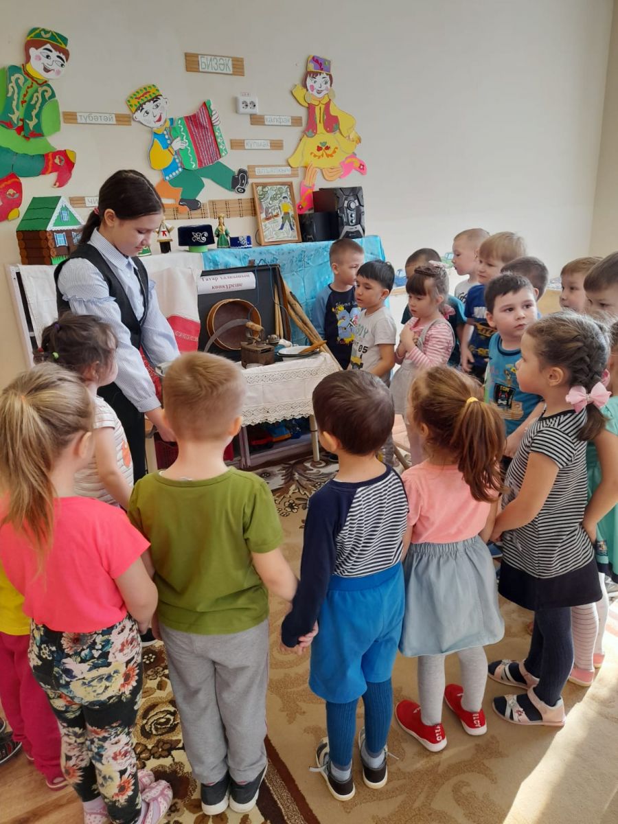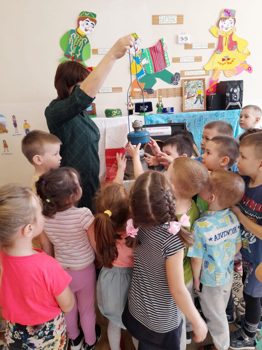 Мама воспитанника средней группы Хусаинова Алмаза - Лилия Таксиновна и его старшая сестра Залия познакомили ребят с коллекцией своего музея, собранной семьей. Воспитанники средней группы окунулись в историю, смогли ощутить неразрывную связь прошлого с настоящим и будущим.
