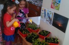 Цель: Учить детей ухаживать за растениями; поливать из леечки