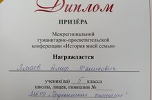 Вчера состоялась Межрегиональная конференция "История моей семьи" в г.Казань на базе гимназии № 39. Ямаев Амир стал призером среди учащихся 5-ых классов (учитель Галиева Е.Н.). Ученицы 8б класса Ахметзянова Айзана и Мухаметзянова Элина получили сертификаты участников (учитель Нафикова В.Н.).