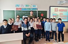 Во 2 в классе был проведен классный час, посвященный Дню защитника Отечества с участием дедушки и папы Галиевой Альмиры. Фаниль Нигматуллович рассказал о службе на морском флоте, поделился опытом и секретами военной жизни. Дал напутственные слова нашим будущим, юным защитникам страны.