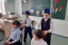 К 21 февраля учащиеся 5 «Б» класса подготовили комедию Маугизова Булата «Капка төбендә» («У ворот»). И успешно смогли передать идею автора, что нужно любить свою Родину, родной язык, родителей.