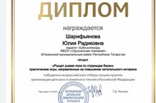 Педагог-библиотекарь МБОУ "Уруссинская гимназия" Шарифьянова Ю. Р. стала победителем всероссийского отбора лучших практик организации детского и семейного чтения Российской Федерации