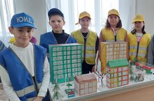 Учащиеся 4 а класса , члены отряда ЮИД принимают участие в районном конкурсе макетов "Безопасный зимний городок"