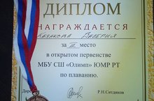 Ученица МБОУ "Уруссинская гимназия" Казакова Валерия получила 3 мессто в открытом первенстве МБ СШ "Лоимп" ЮМУР РТ по плаванию