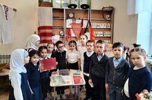 В музее гимназии с обучающимися 1б класса библиотекарь Гарипова Г.М. провела урок Мужества "Память о героях не уйдет в забвенье"