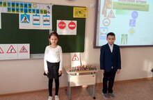 В рамках единого дня безопасности в 1 а классе проведен урок безопасности дорожного движения. Обучающиеся участвовали в играх и викторинах на знание знаков дорожного движения, сигналов светофора, правил поведения в общественном транспорте и на дороге. Изготовили модели транспортного и пешеходного светофоров.