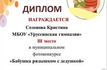 Созонова Кристина стала призером муниципального конкурса "Бабушка рядышком с дедушкой" Поздравляем и желаем творческих успехов!