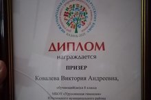 Ковалева Виктория -призёр Международной олимпиады! Поздравляем Викторию и учителя русского языка Ганееву Лилии Ильдаровне, подготовившую призера!!